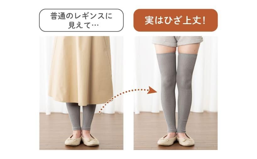 お腹まわりの締め付けが苦手な方に。普通のレギンスに見えて実は太もも丈なんです!下にずらせば足の甲までカバーできます。
