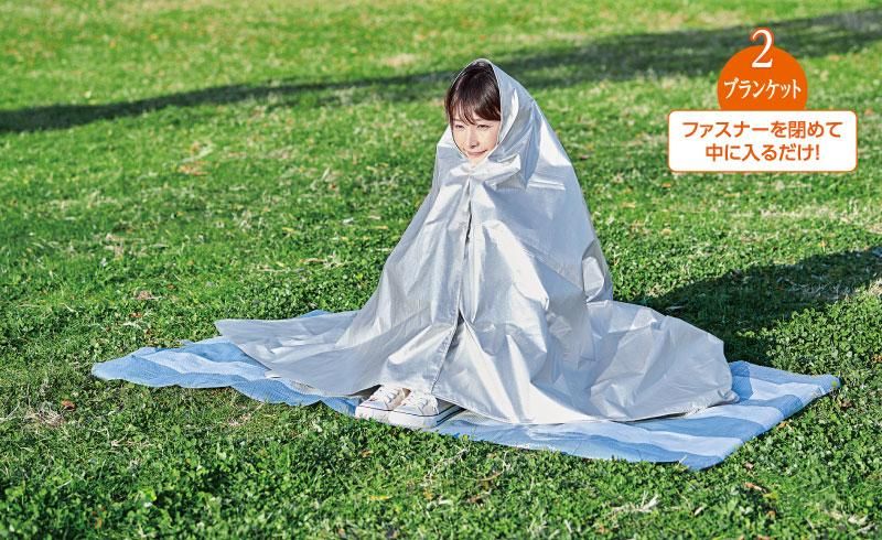 軽い!薄い!あたたかい! 【寝袋】ファスナーを閉めて中に入るだけ! 【ブランケット】ファスナーを開けて体を包むだけ! 【レスキューシート】広げるだけ!