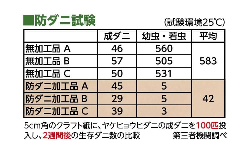 ホウ酸塩とは、人間やペット(哺乳類)にとっては優しく、安全性は食塩と同程度な無機物です。腎臓機能を持たないダニ類や昆虫類などの生物に対してのみ細胞の代謝を阻害し、体外に排出できないため効果を発揮します。ホウ酸塩には防カビ機能もあり、カビの繁殖も抑制します。