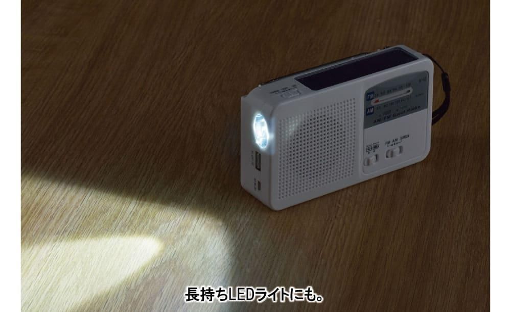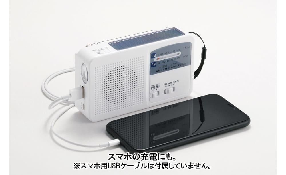 ラジオ、サイレン、モバイルバッテリー、LEDライトの機能を備えたアイテム。充電方法はソーラー、手回し、乾電池など、さまざまな状況下で使用できます。商品到着後、お住まいの放送局に合わせて受信できるかご確認ください。