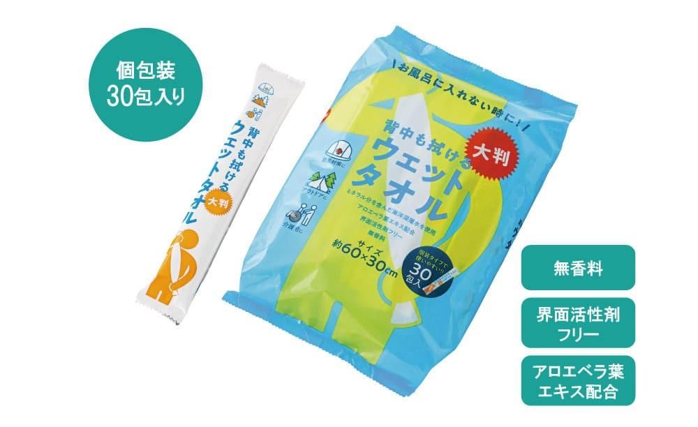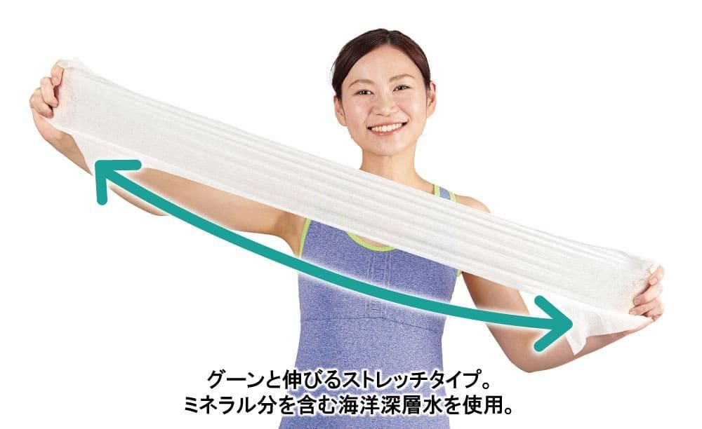 背中も拭ける大判サイズ。グーンと伸びるストレッチタイプ。