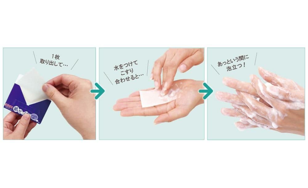 1枚取り出して、水をつけてこすり合わせると、あっという間に泡立つ!