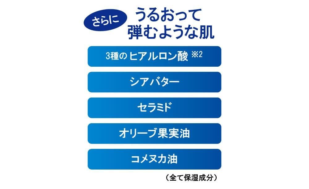 ベタつきにくい高保湿オールインワンゲル。東洋では古くから肌のケアに使われてきた馬油。皮脂膜のような役割を持つため、なめらかになじんでうるおいをキープしながら、外的刺激から肌を守ります。3 種のコラーゲン(※1)が角質層のすみずみまでうるおいとハリを与え、ふっくらとした肌に導きます。 ※1 加水分解コラーゲン、水溶性コラーゲン、サクシノイルアテロコラーゲン ※2 ヒアルロン酸Na、加水分解ヒアルロン酸、アセチルヒアルロン酸Na