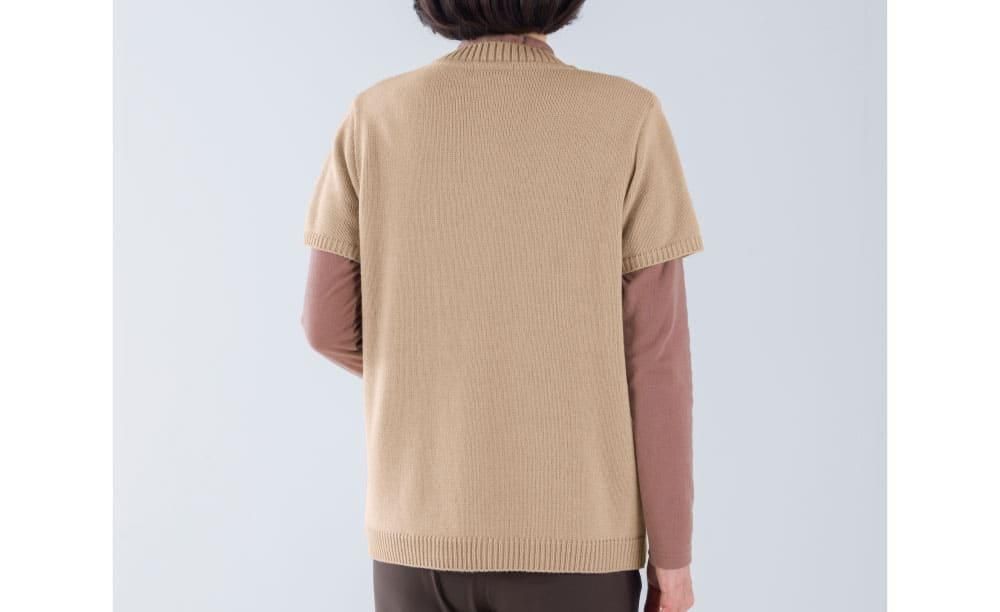 秋から冬のはじまりまで、長く着られるウール混のベストです。肌寒い季節に丁度いい、ほどよいぬくもりのウール混素材。軽くて風合いもソフトなので、着心地が快適です。