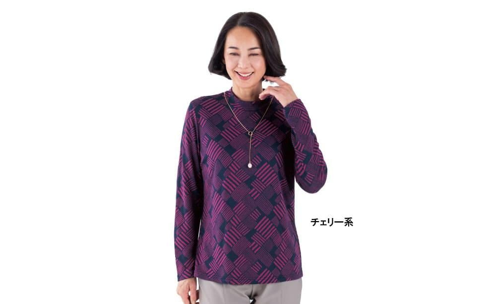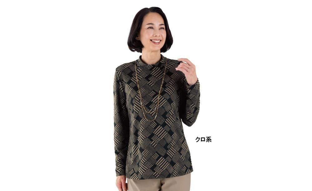 ジャガード編みで表現した幾何柄が、着こなしに華を添えるプルオーバー。軽い着心地で、重ね着のインナーにもピッタリ。両面選針という機械で編んでいるので、立体感があり表情豊か。やわらかな肌ざわりと、心地よいしなやかさが魅力です。