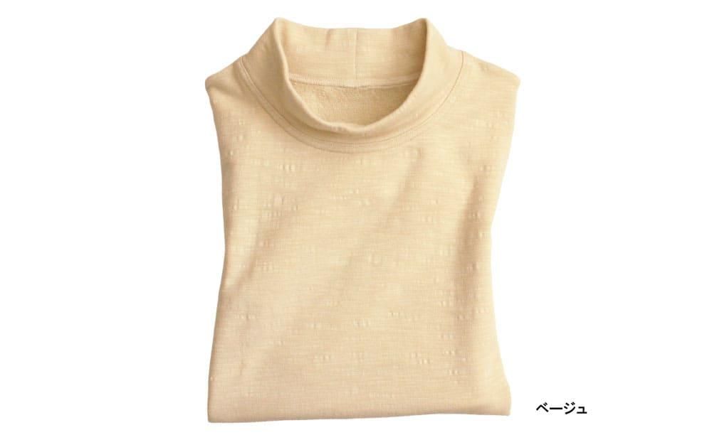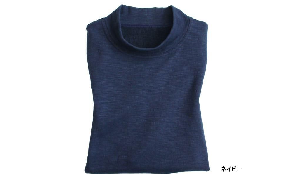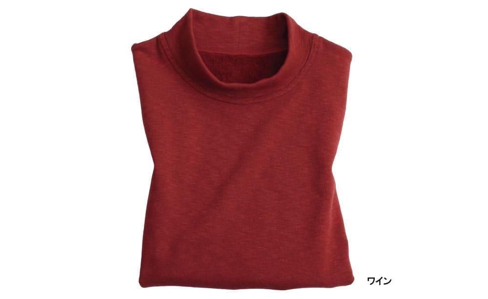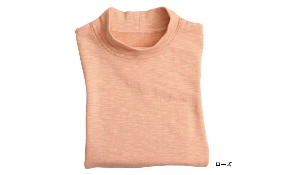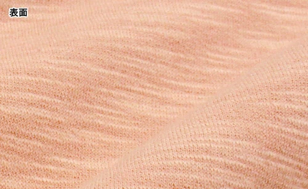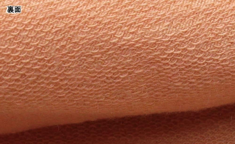 もっちりなめらかな肌ざわりに、伸び感もあってラクな着心地。スラブ生地が品よく見せてくれるので、一枚でもサマになり、着合わせしやすいのも魅力です。表側は、色と太さの異なる糸を使い、濃淡のムラ感と凹凸を出した「スラブ生地」。もっちり心地よい肌ざわりも魅力です。裏側は空気を含んであたたかなパイル生地。吸湿発熱素材を使っているので、軽い着心地なのにとてもあったかです。