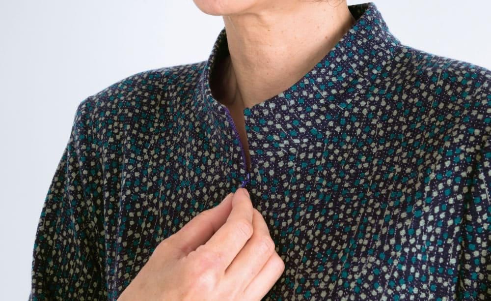 深みのある濃紺のベースにランダムに散りばめられた柄が、さり気ない彩りを添えるプオーバーです。ほどよい高さの衿は、首もとをさり気なくカバーしてくれます。ニットならではのほどよい伸び感とコンシールファスナーで、脱ぎ着もしやすく着心地も快適です。