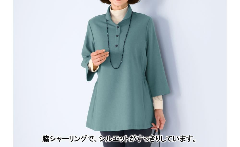 柔らかで膨らみのある風合いのウールライク素材を使用。シワや毛玉になりにくく、ご家庭でも手洗いできるイージーケア性もポイントです。小ぶりな丸衿は顔まわりに優しさをプラスしてくれます。全体にゆったりしていますが、脇のシャーリングとプリンセスラインでシルエットが引き締まり、すっきりとした印象に。