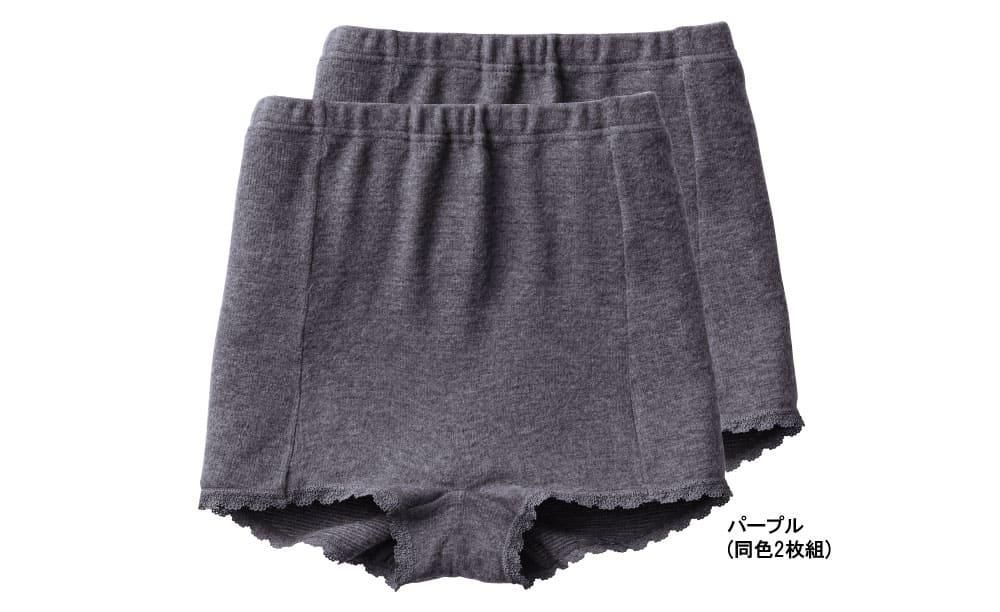表側、肌側ともに保温性にすぐれた起毛仕立て。ソフトでやさしい肌あたりも魅力です。マチ部分の肌側は、天然素材・綿100%です。縫い代が脇ではなく前寄りなで、ゴロつかず快適なはき心地です。