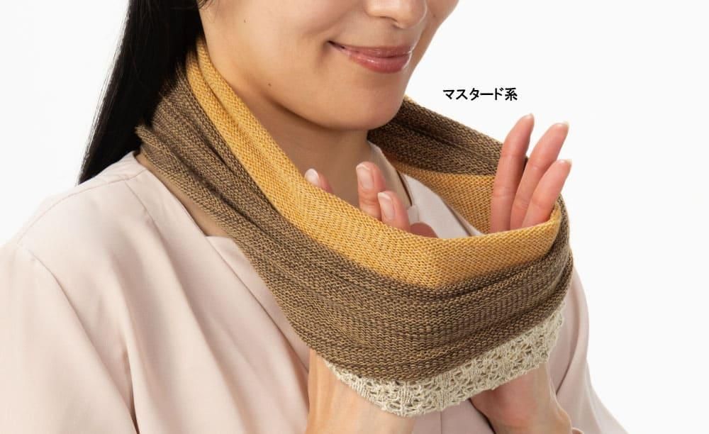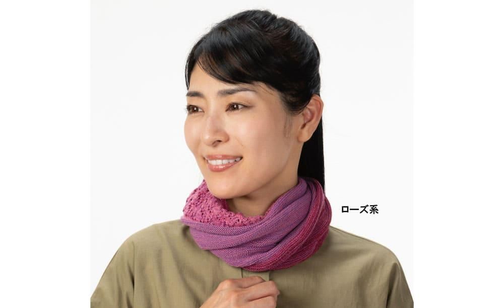 ウール、シルク、コットンの天然素材だけで編み上げた、やわらかなスヌード。保温性の高いウールをたっぷりブレンドしながらもチクチクしにくく、安心してお使いいただけます。おでかけ時の寒さ対策にはもちろん、首のシワ隠し、装いのアクセントとしても役立ちます。着ける角度によって、印象がかわります。グーンと伸びるニット素材なので着脱がラクで、首回りにふんわりやさしく寄り添います。