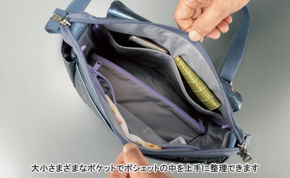 雨や紫外線に強い素材、充実したポケット、防犯対策など工夫がいっぱいです。大小さまざまなポケットで整理上手に。インナーの色が本体とは異なるので、持ち物がすぐに 見つかりサッと取り出せます。