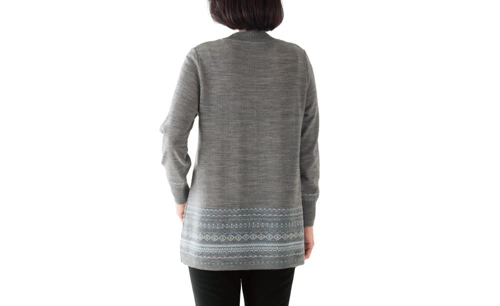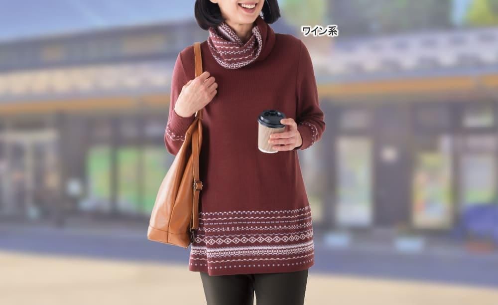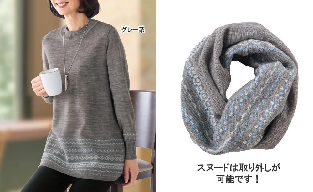ネックウォーマーが取り外しできるトップスなら、半屋外のテラスや寒暖差のある場所にも対応できて便利です。軽くてあたたかなウール混素材を使用。杢調の奥行きのある色合いです。