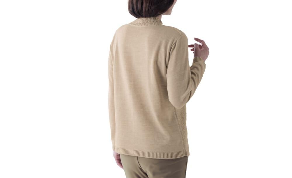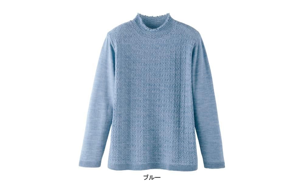 ほどよい厚みと軽い着心地のウール混セーター。表情豊かな編み柄で、シンプルなパンツに合わせるだけでコーディネートが素敵にきまります。素材には上質な極細のウール原毛をブレンド。繊維一本一本が細いのでチクチクせず、なめらかな肌ざわりです。上品なツヤ感もポイント。