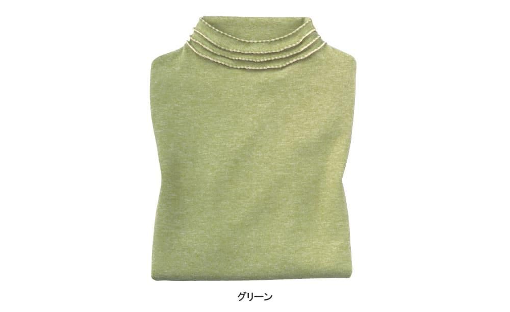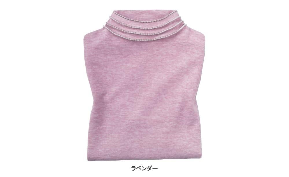 肌になじむような、しっとりソフトな風合いが心地いいプルオーバーです。衿まわりに飾りミシンのアクセントを加え、ほんのり華やかさをプラスしました。杢糸を使った色合いがやさしい印象です。表面をふんわり起毛させたニット素材は見た目にもやわらかくあったか。よく伸びるのでラクな着心地です。