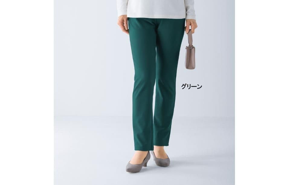 ●ほどよいゆとりがありラクにはける! ●股上が深めで安心感のあるはき心地! ●ひざ下ストレートでシルエットスッキリ! ●ウエスト総ゴムでお腹ラクラク!