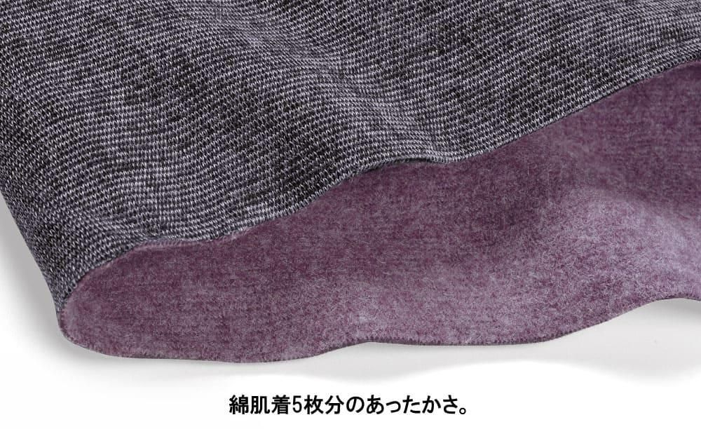 締めつけがなく、すっきりラクに重ね着できる伸縮性抜群の生地を使用。裏起毛は暖かいけど動きづらい…。そんなお悩みを解消します。機能素材「ホットマジック」は発熱性と調湿性を兼ね備えているので、暖かくて快適です。
