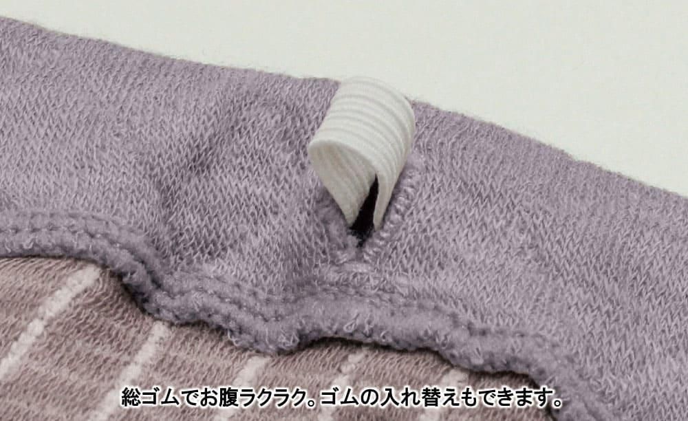 暖かい空気を溜め込むキルト仕様。冷えやすいお腹まわりをぬくもりで包み込みます。