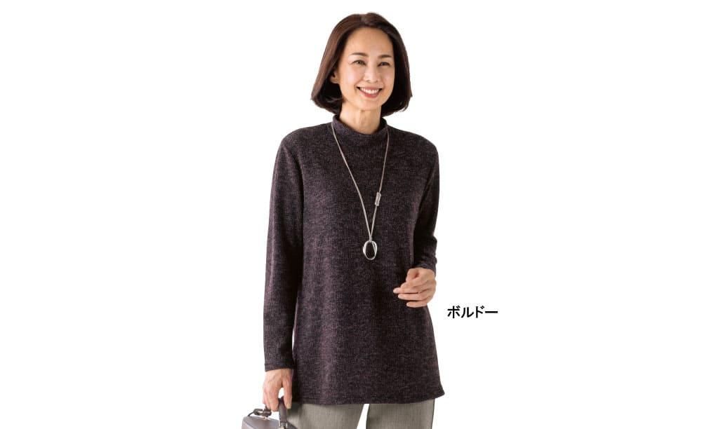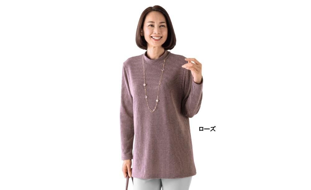 ストライプの編み柄が、すっきり上品な印象のプルオーバー。腰まわりもすっぽり包み込むロング丈で、着心地があったか快適です。2枚の生地を重ねた、ふんわりソフトでほどよいボリューム感のあるダブルフェイスニット。ニットならではの伸び感もあるので着心地もラクラク。杢と黒の糸を組み合わせた奥行きのある色合いも魅力です。